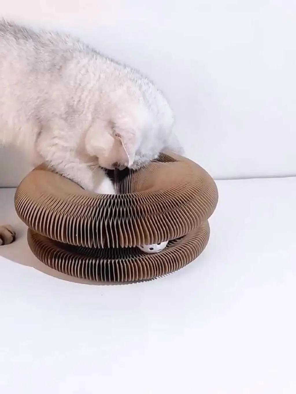 A scratcher, ball track, shape-shifter and even a cozy bed.
