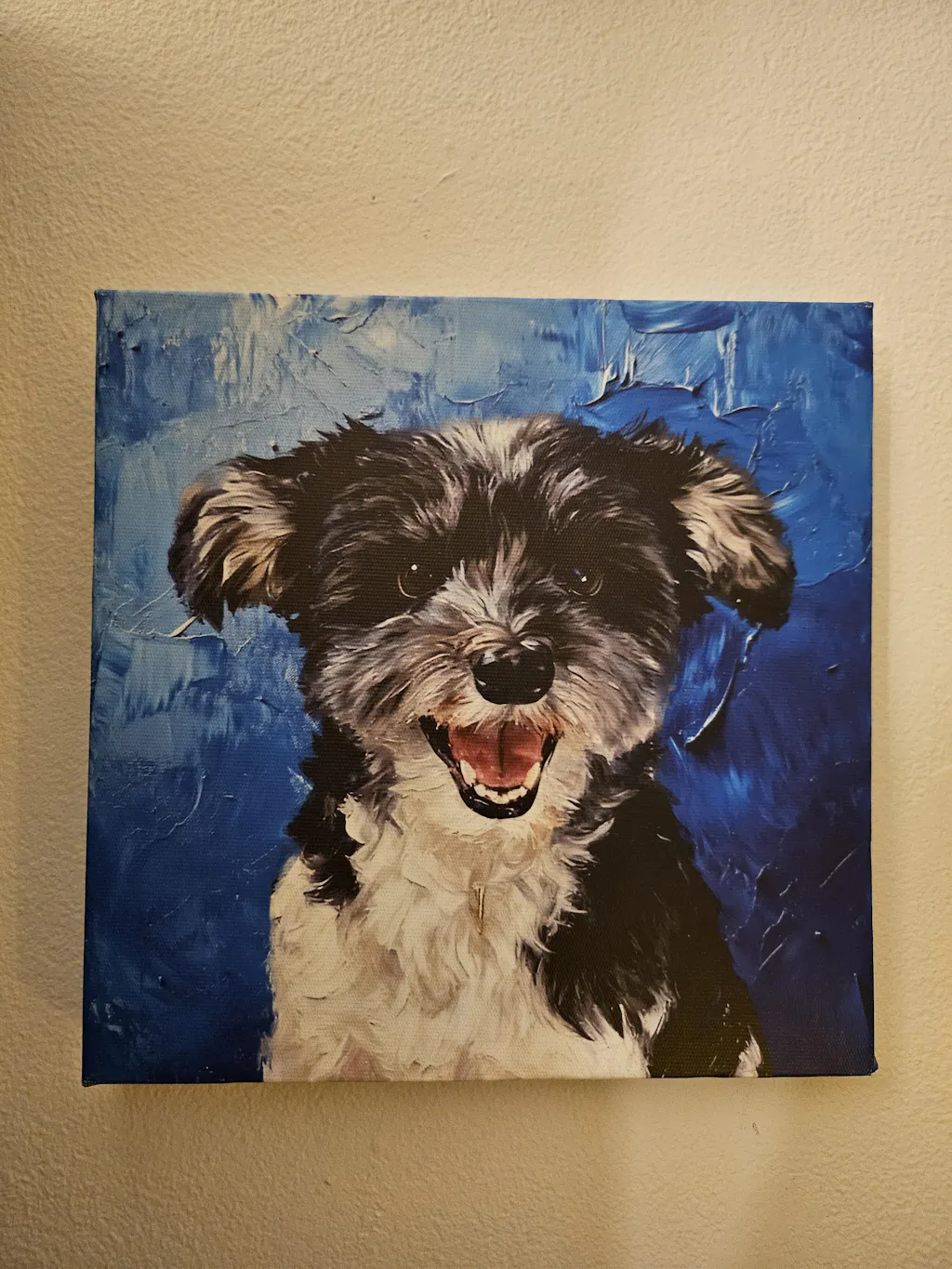 The artist captured something really special about my dog's personality — the way her ears are slightly tilted, the look in her eyes. I don't know how they did it from a single photo but it's perfect. My home feels warmer with this on the wall.