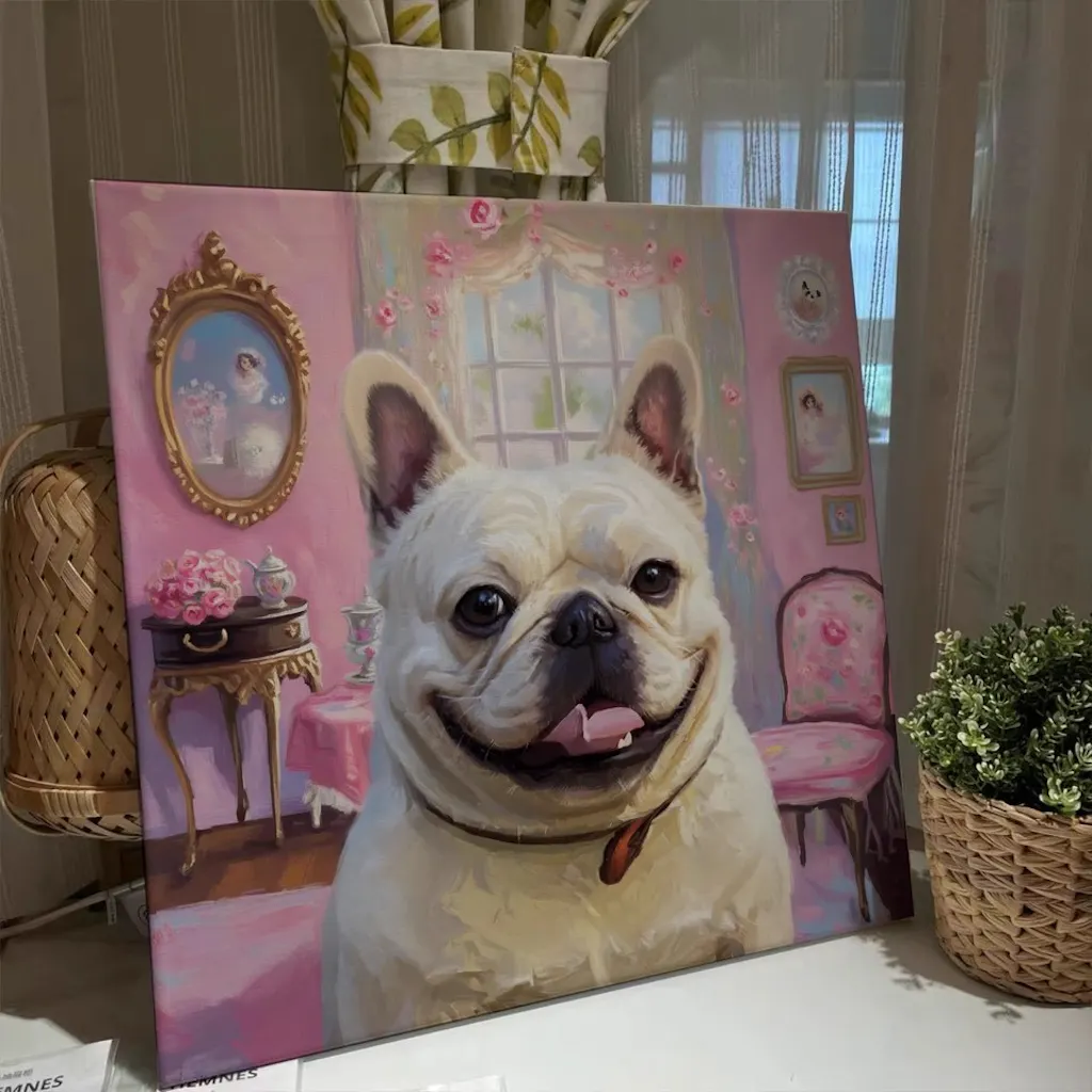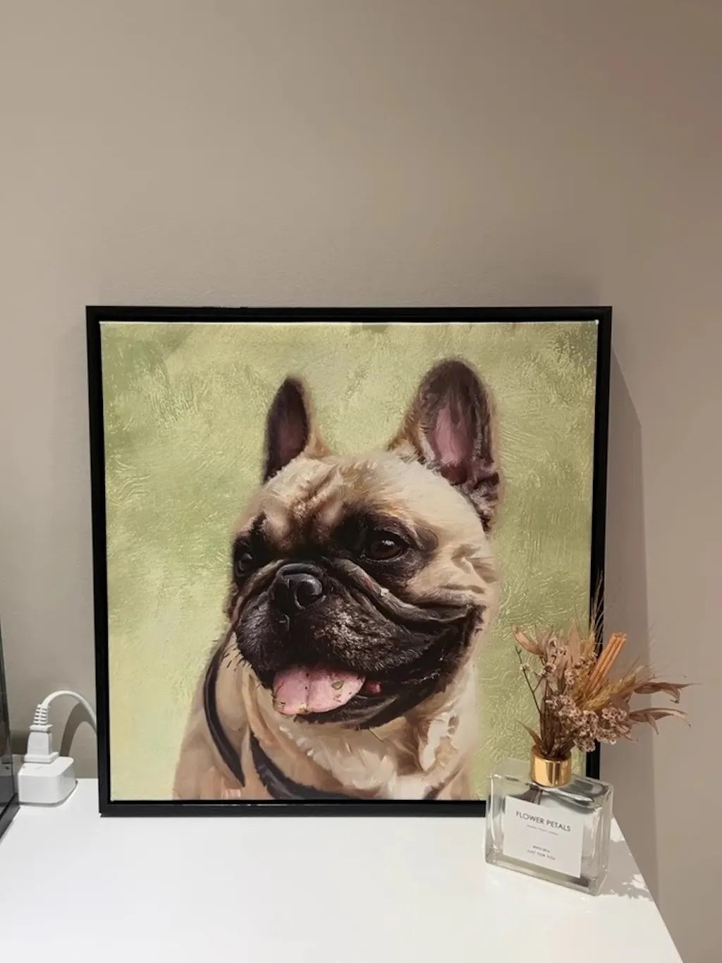 I bought this for my own birthday as a treat and I have zero regrets. My French bulldog looks absolutely majestic. The colours are more vivid in person than in the product photos which I did not expect. Hanging it in the bedroom so I can see it first thing every morning.