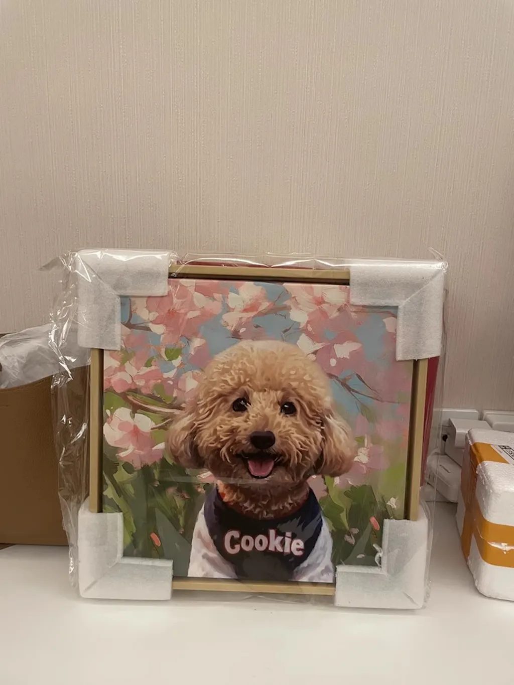 Shipped faster than expected and the packaging was beautiful — felt like opening a real piece of art. The portrait itself is stunning. My dog looks magnificent. The colours are rich and vivid and the detail is unbelievable for the price. Will be ordering one for my cat next.