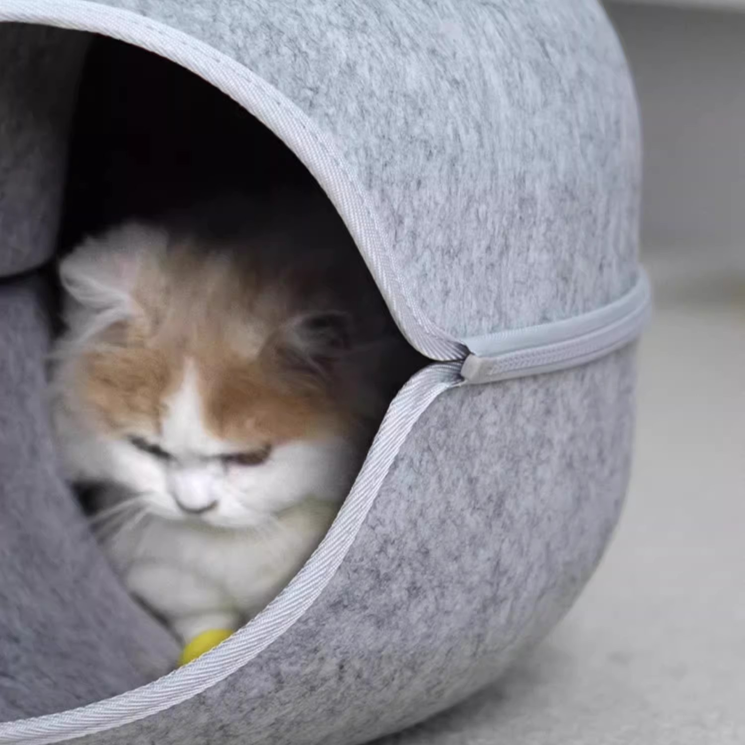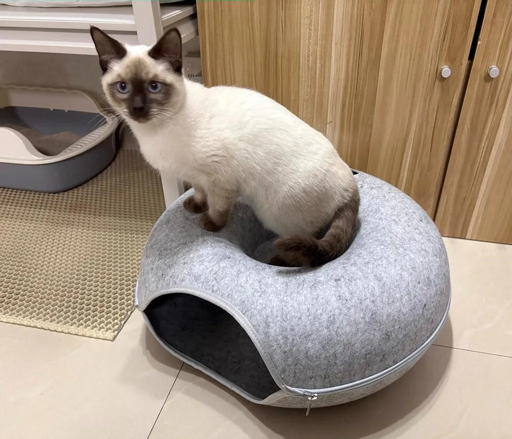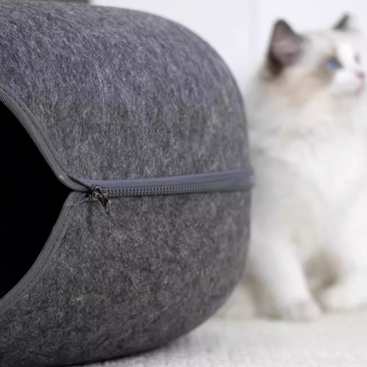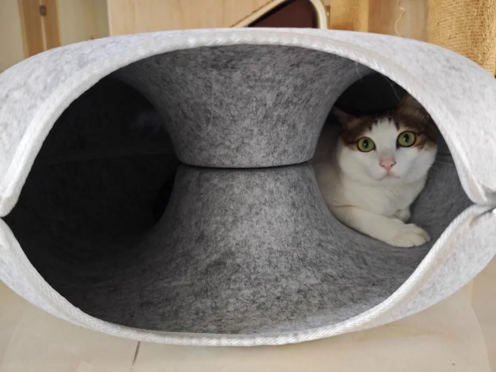 The thick compressed felt is claw-resistant, sound-absorbing, and warm enough to make even the most anxious cat feel completely safe. The peephole lets your cat watch the world from their hideout — peeking, plotting, and pouncing on anyone who walks by. The tunnel is wide enough for two adult cats to share, making it perfect for multi-cat households where everyone needs their own space but nobody actually wants to be alone.