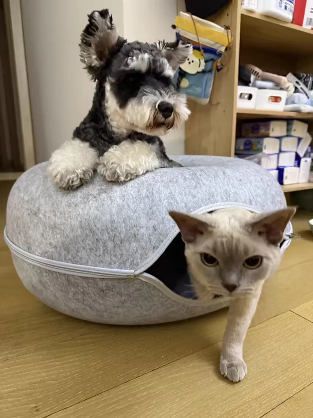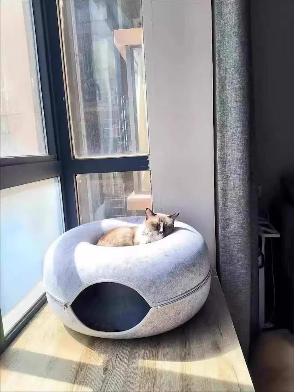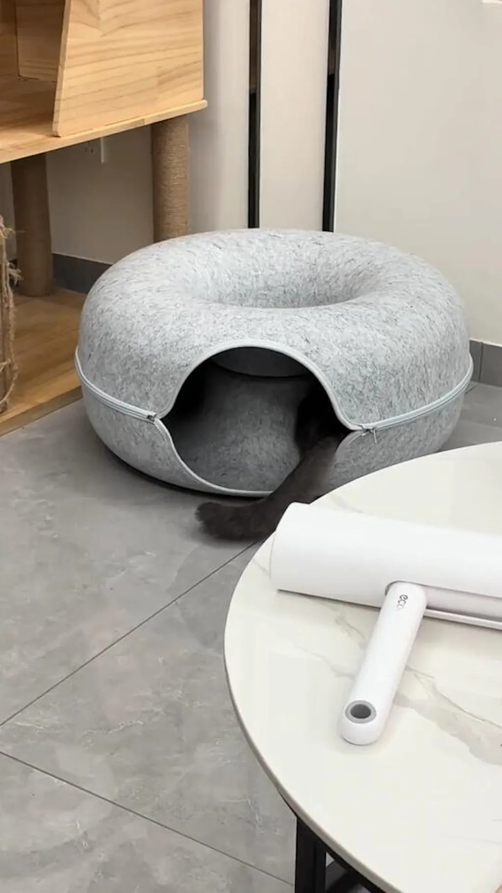 The thick compressed felt is claw-resistant, sound-absorbing, and warm enough to make even the most anxious cat feel completely safe. The peephole lets your cat watch the world from their hideout — peeking, plotting, and pouncing on anyone who walks by. The tunnel is wide enough for two adult cats to share, making it perfect for multi-cat households where everyone needs their own space but nobody actually wants to be alone.