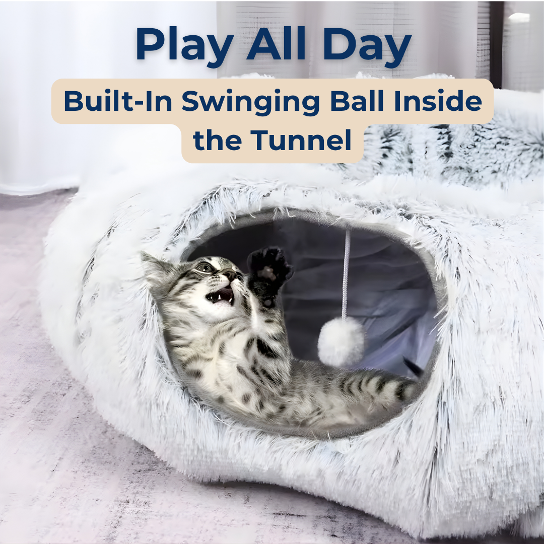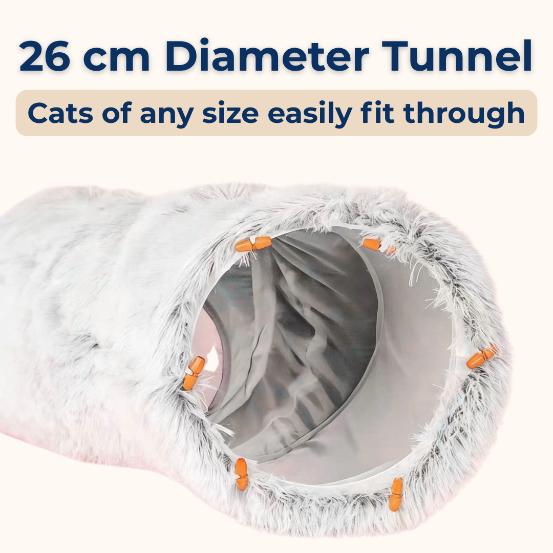 - Spacious tunnel fits two adult cats comfortably